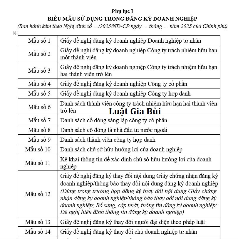 📄Tải ngay: Toàn văn Biểu mẫu về Đăng ký doanh nghiệp 2025