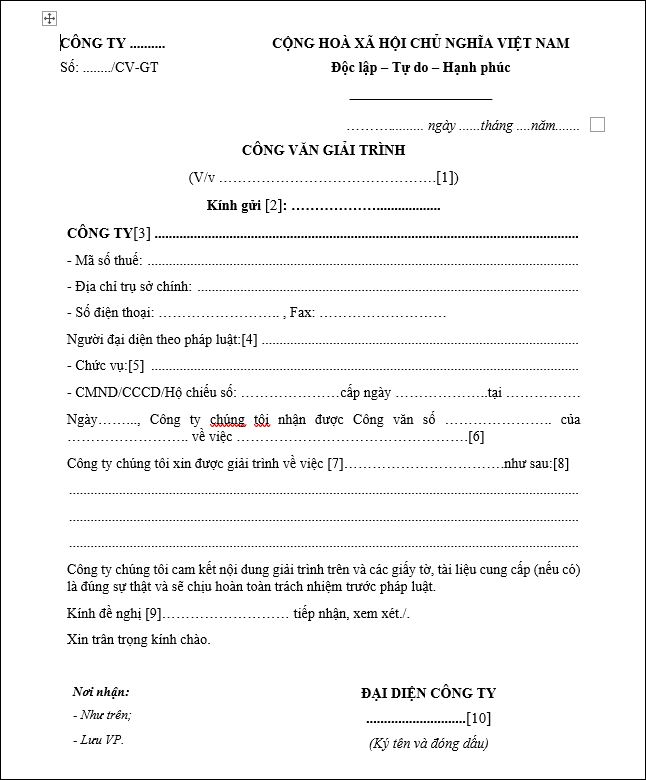 Dưới đây là mẫu công văn giải trình sử dụng hóa đơn bất hợp pháp mới nhất, giúp doanh nghiệp trình bày rõ ràng và đúng quy định pháp luật để cơ quan chức năng xem xét và xử lý phù hợp.