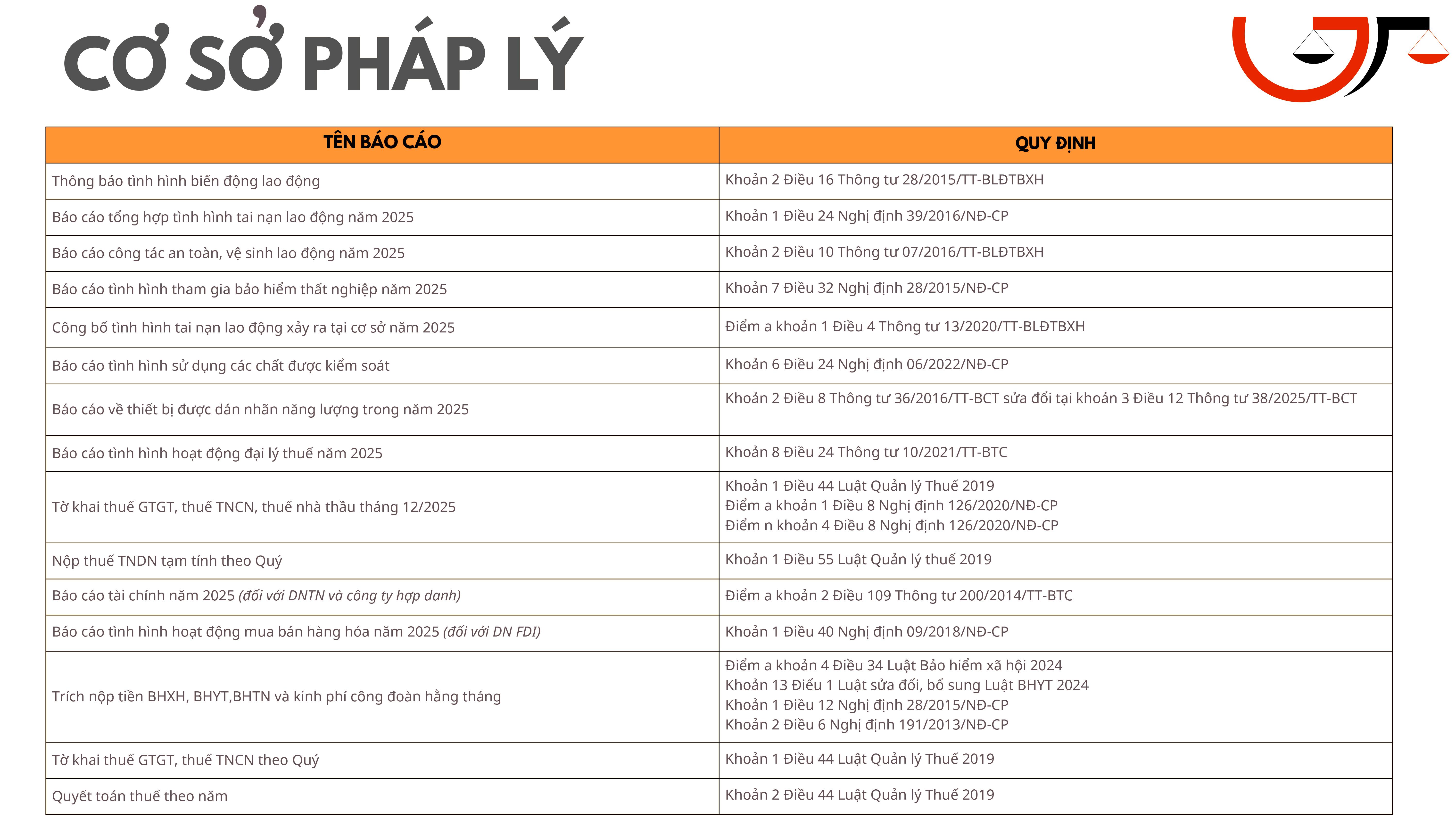 I. Các công việc pháp lý cố định phải thực hiện hàng tháng