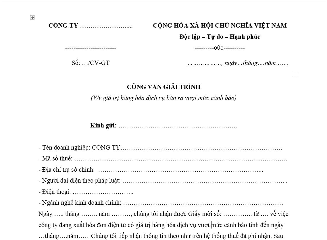 [Tải mẫu công văn giải trình hệ số K thuế]