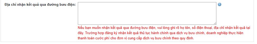 - Điền các thông tin theo yêu cầu trong tờ khai đăng ký để đăng ký nhận trả kết quả hồ sơ đăng ký doanh nghiệp qua đường bưu điện.